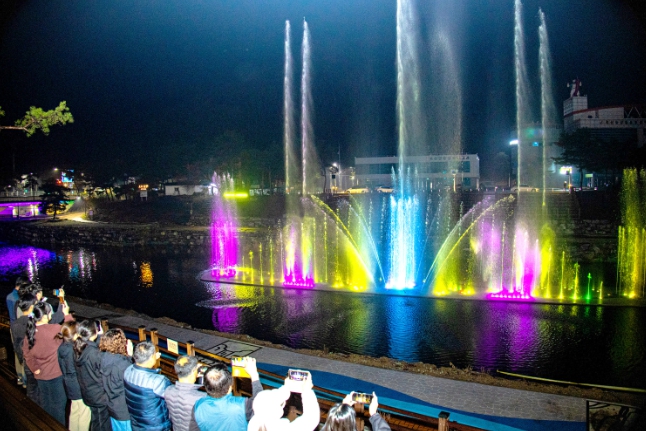 이날 개장한 음악분수는 음악에 맞춰 물줄기가 다양한 형태로 연출되고 야간에는 조명이 더해져 화려한 경관을 선보였다.