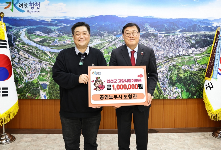 김윤철 합천군수는 “공직 경험을 바탕으로 군정 발전에 지속적으로 힘을 보태주고 계신 도형진 노무사님의 따뜻한 나눔에 깊이 감사드린다”며 “군민과 출향인의 관심과 참여가 합천의 미래를 여는 중요한 동력이 되고 있다”고 말했다.