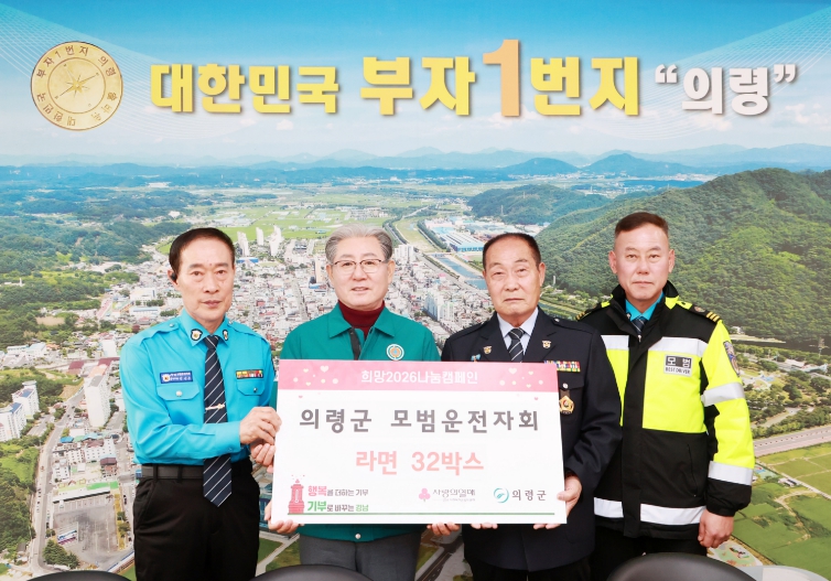 [뉴스앤톡] 의령군은 지난 30일, 연말 이웃돕기를 위해 의령군 모범운전자회가 라면 32박스(100만 원 상당)를 기탁했다고 밝혔다.