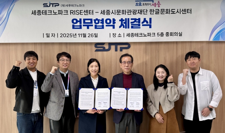 [뉴스앤톡] 세종시문화관광재단 한글문화도시센터(센터장 양유정)와 세종테크노파크 RISE센터(센터장 윤석무)가 ‘한글문화도시 세종’ 조성과 지역혁신 역량 강화를 위한 협력에 나섰다.