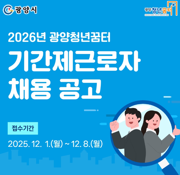 [뉴스앤톡] 광양시는 2026년 한 해 동안 광양청년꿈터 운영을 함께할 기간제근로자 4명을 모집한다고 1일 밝혔다.