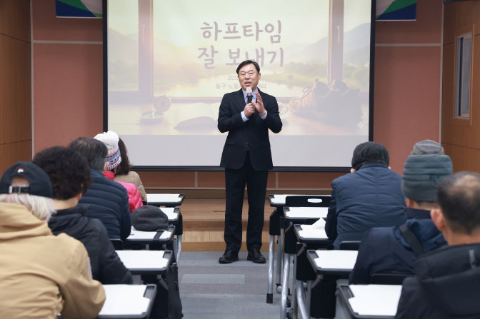 특히 이날 특강에는 김종훈 동구청장이 직접 참석해 “퇴직 후 잠깐의 쉼과 재충전은 꼭 필요하다. 더 멋진 인생 2막을 위해 인생의 하프타임을 잘 보내길 바라며, 동구청과 노동자지원센터는 생애설계와 재학습, 재충전을 위해 다양한 프로그램과 지원을 아끼지 않겠다.”라며 격려의 메시지를 전했다.