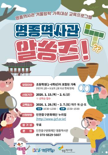 | ▲ 중구 영종역사관, 겨울방학 가족 체험교육 '영종역사관 알쏭즈!' 참여자 모집 |