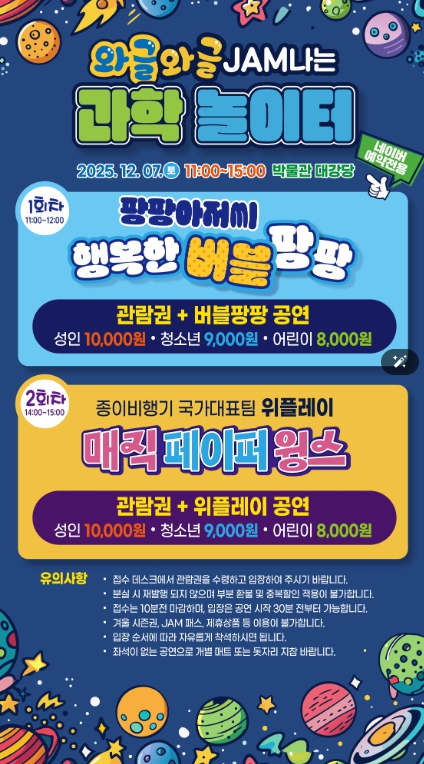 [뉴스앤톡] 제주국제자유도시개발센터(이사장 직무대행 곽진규, JDC)에서 운영하는 제주항공우주박물관에서는 오는 12월 7일 과학과 문화가 융복합된‘와글와글 JAM나는 놀이터’를 개최할 예정이다.