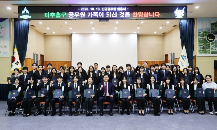 이영훈 구청장은 “미추홀구의 가족이 된 것을 진심으로 축하한다.”라며, “공직자로서 자부심과 책임감을 가지고 구민 복리 증진과 지역 발전을 위해 맡은 바에 최선을 다해주시길 바란다.”라고 당부했다.