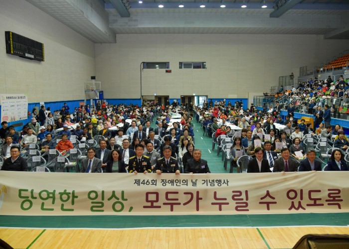 | ▲ 김포시가 17일 김포시장애인단체연합회 주관으로 김포시민회관 실내체육관에서 제46회 김포시 장애인의 날 기념행사를 개최했다. |