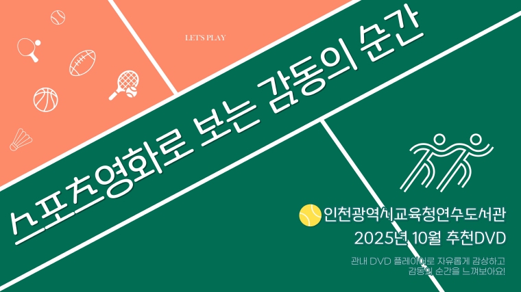 [뉴스앤톡] 인천광역시교육청연수도서관은 10월 한 달간 ‘스포츠로 보는 감동의 순간’을 주제로 추천 DVD 코너를 운영한다.