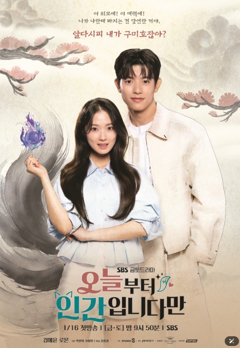 오는 16일(금) 첫 방송되는 SBS 새 금토드라마 ‘오늘부터 인간입니다만’(극본 박찬영·조아영, 연출 김정권, 기획 스튜디오S, 제작 빈지웍스·모그필름) 측은 7일, 사랑할 수밖에 없는 구미호 은호(김혜윤 분)와 그에게 빠져들 수밖에 없는 인간 강시열(로몬 분)의 한 폭의 그림 같은 케미스트리가 담긴 메인 포스터를 공개했다.