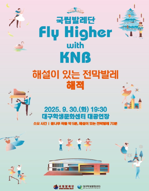 [뉴스앤톡] 대구학생문화센터는 9월 30일 오후 7시 30분부터 대공연장에서 재단법인 국립발레단과 함께하는 ‘Fly Higher with KNB '해설이 있는 전막 발레‘해적’'’ 공연을 선보인다.