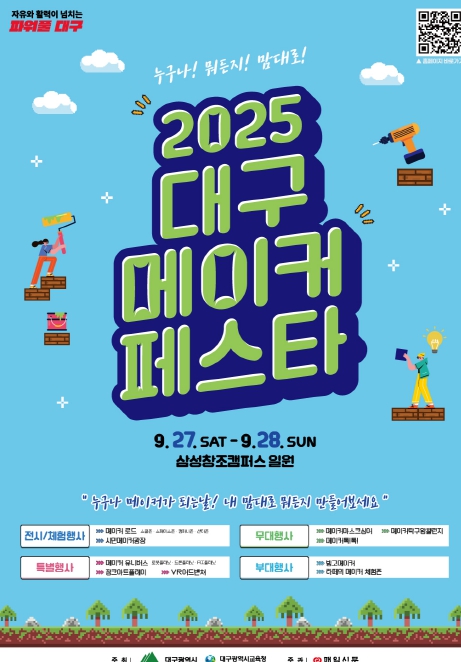 [뉴스앤톡] 대구시교육청은 9월 27일부터 28일까지 메이커 문화 확산을 위해‘누구나! 뭐든지! 맘대로!’를 슬로건으로‘2025 대구메이커페스타(DMF)’를 대구시와 공동으로 개최한다.