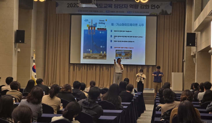 [뉴스앤톡] 경상북도경주교육지원청은 10월 21일 황룡원 1층 대연회장에서 관내 초, 중, 고, 특수학교 독도교육 담당자 83명을 대상으로 『2025 독도 교육 담당자 역량 강화 연수』를 개최했다.
