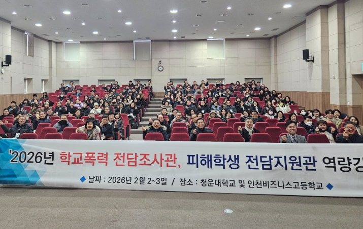 [뉴스앤톡] 인천광역시교육청은 지난 2일부터 이틀간 청운대학교와 인천비즈니스고등학교에서 ‘2026년 학교폭력 전담조사관 역량 강화 연수’를 실시하고, ‘학교폭력 보안관’ 운영 준비를 마쳤다.