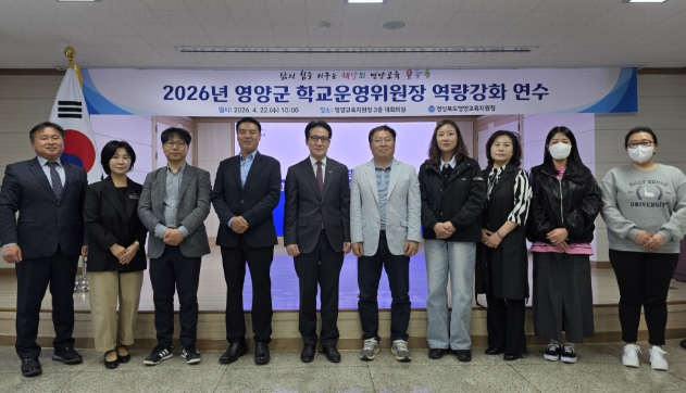 [뉴스앤톡] 영양교육지원청은 4월 22일 영양교육지원청 3층 대회의실에서 관내 초・중・고등학교 10개교 학교운영위원장을 대상으로 2026학년도 학교운영위원장 연수를 실시하고 영양군 학교운영위원장협의회를 이끌어갈 임원진을 선출했다.