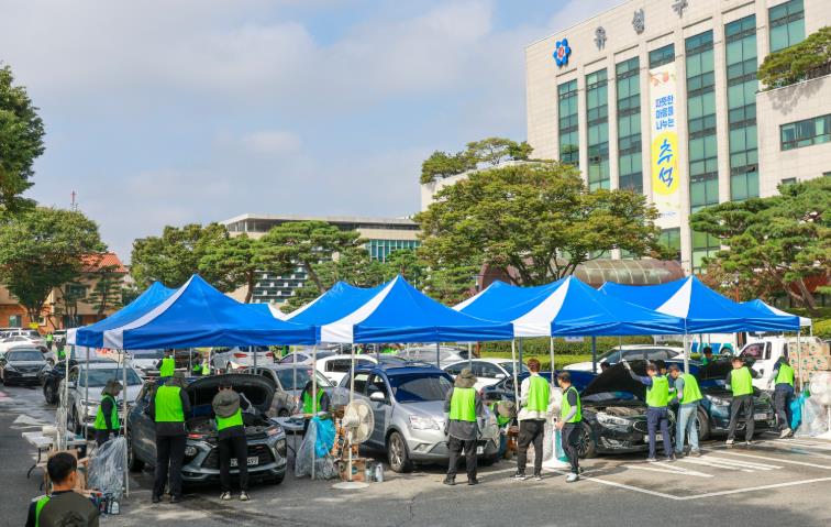 | ▲ 지난 21일 유성구는 추석 맞이 자동차 무상 점검 행사를 개최했다. |