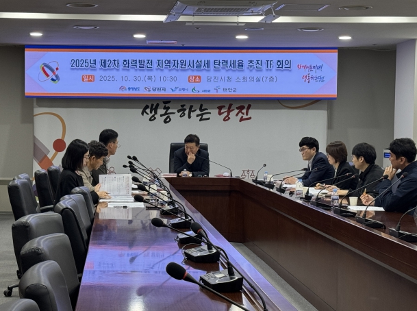 [뉴스앤톡] 당진시는 10월 30일 당진시청 소회의실에서 화력발전 지역자원시설세의 탄력세율 적용 확대를 위해 ‘화력발전 지역자원시설세 탄력세율 T/F회의’를 진행했다고 밝혔다.