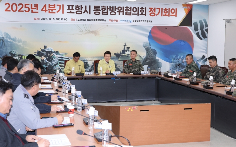 [뉴스앤톡] 포항시는 5일 포항시 통합방위상황실에서 ‘2025년 4분기 포항시 통합방위협의회 정기회의’를 개최하고 변화하는 안보 환경에 대한 대응 태세와 겨울철 재난 발생 가능성에 대비한 지역 통합방위 체계를 종합적으로 점검했다.