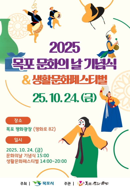 [뉴스앤톡] 목포문화재단은 오는 10월 24일 오후 2시 평화광장에서 ‘2025 목포 문화의 날 기념식 및 생활문화페스티벌’을 개최한다.
