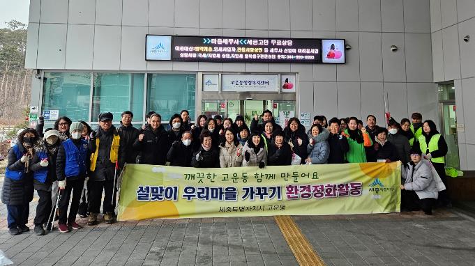 이번 활동은 설 연휴 기간 고운동을 찾는 귀성객과 주민들에게 쾌적하고 깨끗한 생활환경을 제공하기 위해 마련된 것으로, 직능단체 회원들을 비롯한 지역 주민과 동 직원 등 100여 명이 참여했다.