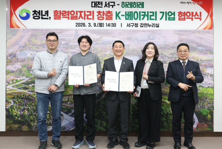 [뉴스앤톡] 대전 서구는 청년활력일자리창출 11번째 협약 기업으로 지역 대표 K-베이커리 하레하레(대표 이창민)를 선정하고 ‘2026년 청년 활력 일자리 창출’을 위한 업무협약을 체결했다고 10일 밝혔다.