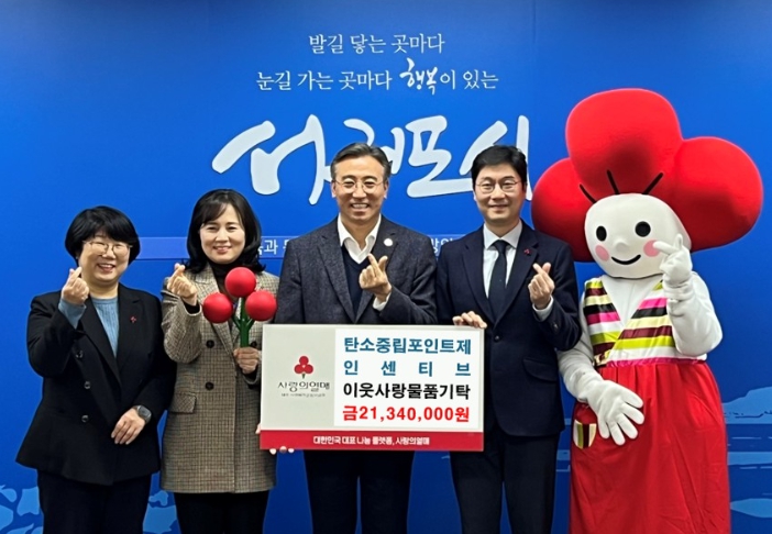 [뉴스앤톡] 서귀포시는 10일 지역 내 어려운 이웃을 위해 2023년도 하반기와 2024년도 상반기 탄소중립포인트제 인센티브 21,340천 원 상당의 상품권을 제주사회복지공동모금회에 지정 기탁했다.