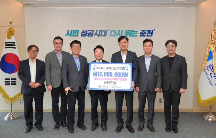 이날 시청 접견실에서 열린 전달식에는 임직원 120명을 대표해 박재환 신한은행 강원영서본부장, 성권모 강원영업부 금융센터장 등 관계자 4명이 참석했다. 박재환 본부장은 “춘천 발전을 응원하는 마음으로 도내 임직원들이 뜻을 모았다”며 “이번 기부가 고향사랑기부제에 대한 시민 관심과 참여를 높이는 계기가 되길 바란다”고 말했다.