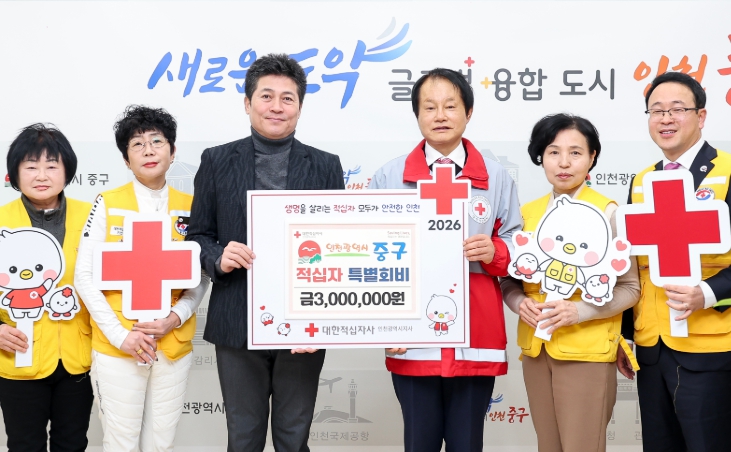 [뉴스앤톡] 인천시 중구는 병오년 새해를 맞이해 대한적십자사 인천지사에 ‘2026년도 적십자 특별회비’ 300만 원을 전달하며 나눔과 상생의 가치를 실천했다고 7일 밝혔다.