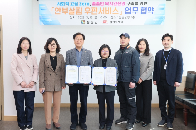 [뉴스앤톡] 철원군은 2026년 3월13일 오전 10시, 철원군청 2층 군수 집무실에서 철원우체국(국장 최은애)과 ‘안부살핌 우편서비스’업무협약식을 체결했다.
