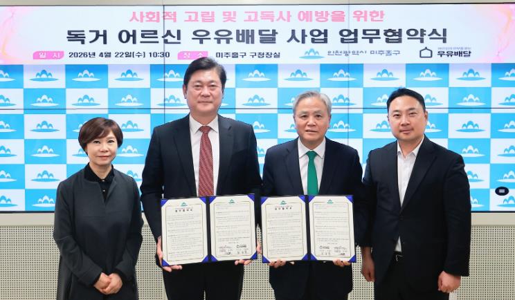 [뉴스앤톡] 인천 미추홀구는 22일 (사)어르신의 안부를 묻는 우유배달과 독거 어르신의 건강한 생활 지원 및 고독사 예방을 위한 ‘어르신의 안부를 묻는 우유배달 사업’ 업무협약을 체결했다.