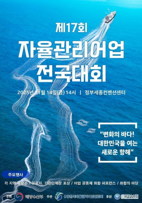[뉴스앤톡] 해양수산부는 11월 14일 정부세종컨벤션센터에서 ‘변화의 바다! 대한민국을 여는 새로운 항해’라는 주제로 ‘제17회 자율관리어업 전국대회’를 개최한다고 밝혔다.