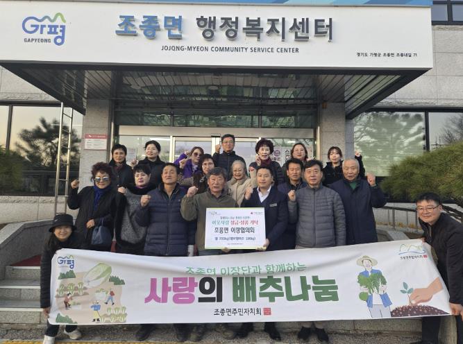 [뉴스앤톡] 가평군 조종면 이장협의회와 주민자치회는 17일 조종면행정복지센터에 쌀 700kg을 기탁하며 지역 나눔 활동에 힘을 보탰다.