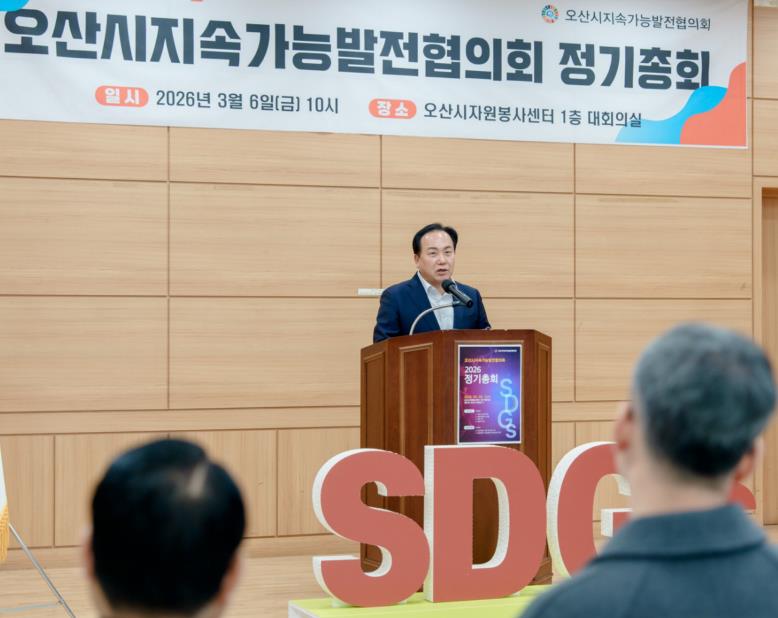 [뉴스앤톡] 오산시는 지난 6일 자원봉사센터 대회의실에서 회원과 관계자 등 70여 명이 참석한 가운데 오산시지속가능발전협의회 2026년 정기총회를 개최했다고 밝혔다.