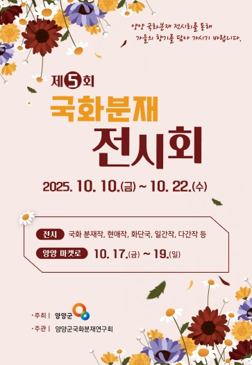 [뉴스앤톡] 양양군 국화분재연구회(회장 윤종욱)는 오는 10일부터 22일까지 13일간 양양군농업기술센터에서 ’제5회 국화분재 전시회‘를 개최한다.