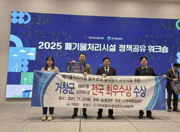 [뉴스앤톡] 거창군은 지난달 27일 기후에너지환경부가 주관하고 한국환경공단이 시행한 2025년 폐기물처리시설 운영·실태 평가에서 전국 최우수시설로 선정됐다.