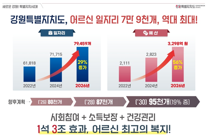 [뉴스앤톡] 강원특별자치도는 2026년 어르신 일자리를 역대 최대 규모인 79,459개로 확대 시행한다고 밝혔다.