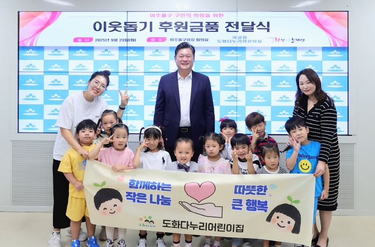 [뉴스앤톡] 인천 미추홀구는 23일 구청장실에서 국공립도화다누리어린이집(원장 이은정)으로부터 지역 내 저소득층을 위한 후원금 60만 원을 전달받았다.