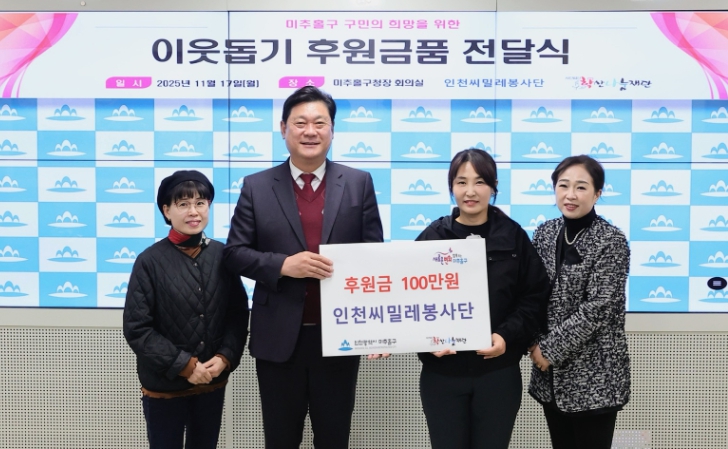 [뉴스앤톡] 인천 미추홀구는 지난 17일 구청장실에서 인천씨밀레봉사단(단장 양수진)으로부터 기부금 100만 원을 전달받았다.