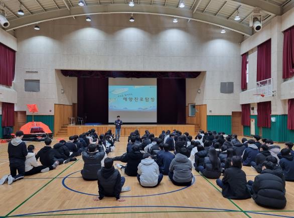 학생들에게 해양관련 다양한 진로 정보를 제공하고 흥미를 유발하고자 해양환경 보존의 필요성, 미래 해양산업의 가치, 해양 관련 직업 소개, 해양 골든벨 형식의 게임을 통해 교육을 실시할 예정이다.