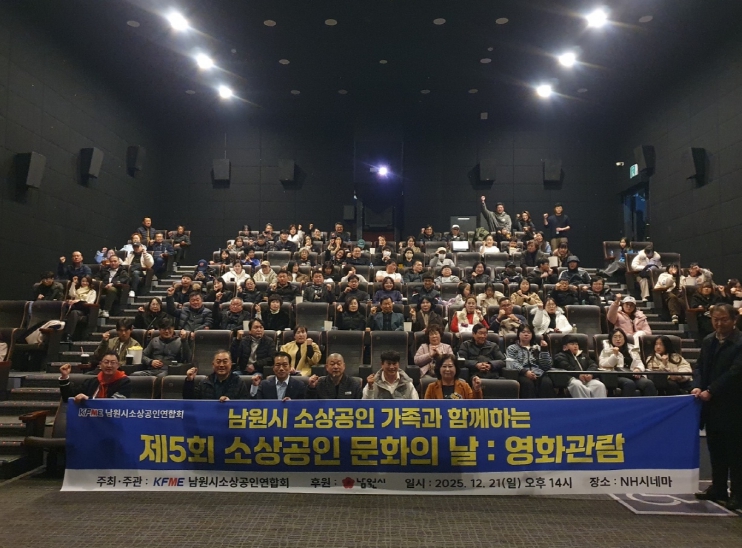 [뉴스앤톡] 남원시소상공인연합회(회장 강상남)는 지난 21일 NH시네마에서 소상공인과 가족들을 초청해 영화 관람 행사를 열고 ‘소상공인 문화의 날’을 기념했다.
