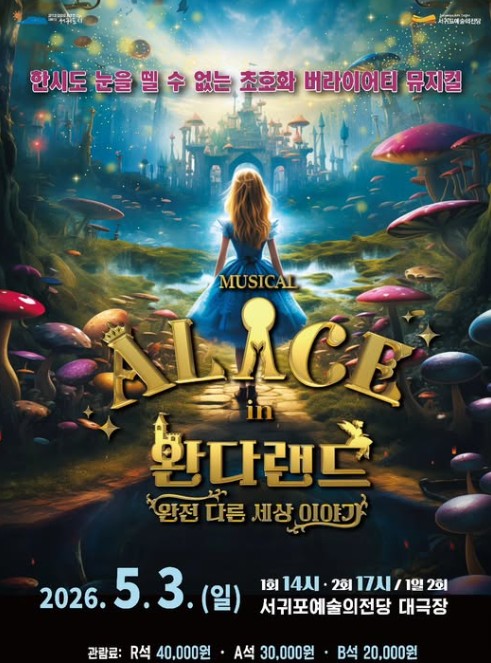 [뉴스앤톡] 서귀포예술의전당은 5월 가정의 달을 맞아 뮤지컬 '이상한 나라의 앨리스: 완다랜드'를 5월 3일 오후 2시와 5시, 총 2회에 걸쳐 서귀포예술의전당 대극장에서 선보인다.