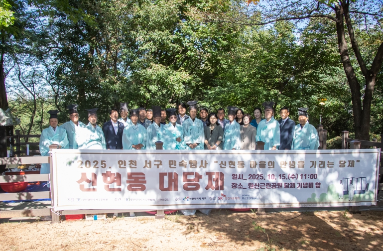 [뉴스앤톡] 인천광역시 서구문화원(원장 정군섭), 신현동우회(회장 김황우)는 지난15일 오전 11시, 신현동 원신근린공원 대당제 기념비 앞에서 2025년 인천 서구 민속행사 ‘신현동 대당제’를 개최했다.