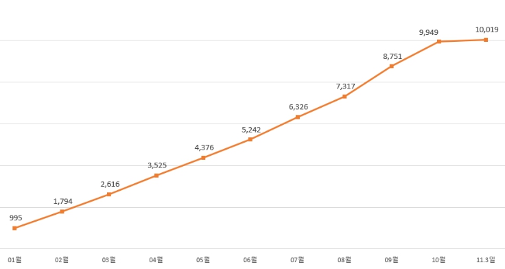 | ▲ 2025년 월별 누적 거래 금액 |