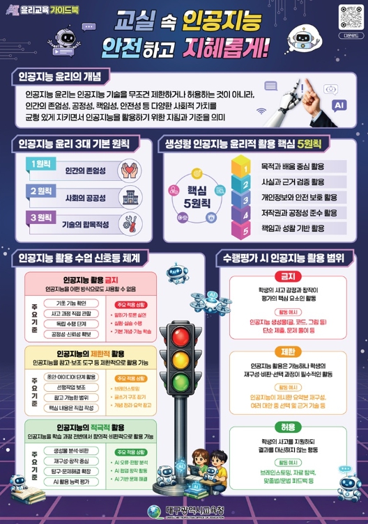 [뉴스앤톡] 대구시교육청은 인공지능(AI) 기술이 일상과 교육 전반에 빠르게 확산되는 환경 속에서, 학생들이 기술을 올바르고 책임 있게 활용할 수 있도록 지원하기 위해‘AI 윤리교육 가이드북’과 ‘범교과 SW·AI 디지털 시민윤리 교수∙학습자료’를 개발해 학교 현장에 보급한다.