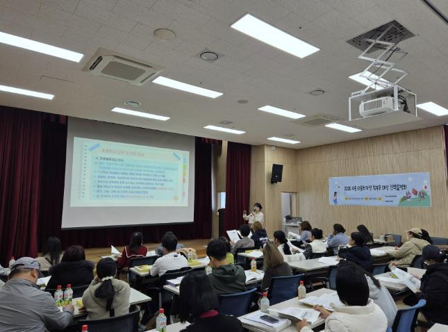 11월 17일 진행된 1회차 연수에서는 '홍성주 박사(교육학)'가 강사로 참여해 '공감과 창의 기반의 Design Thinking 수업 사례'를 중심으로 강의했다. 참여 교사들은 "우리가 어떻게 하면 다양한 문화 속 친구들과 즐겁게 학교 생활을 할 수 있을까?"라는 질문에서 출발해 차이와 다름을 존중하는 교실문화 조성 방안을 탐색했다. 이날 연수는 다름을 배려하는 교수 학습 방법 놀이 중심 예술융합 수업 학생 평가와 피드백 사례 등 수업 현장 중심의 실천형 프로그램으로 구성되어 교사들이 바로 적용할 수 있는 구체적 전략을 얻을 수 있었다.