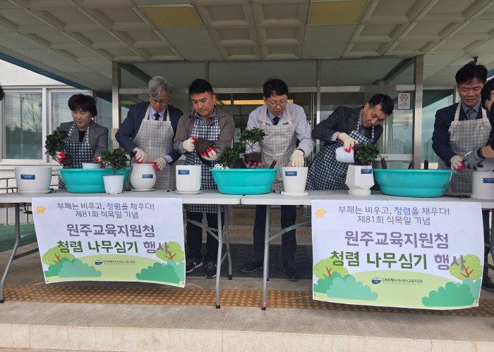 [뉴스앤톡] 강원특별자치도원주교육지원청은 4월 6일 오전 9시 30분, 원주교육지원청 청사 현관 앞에서 제81회 식목일 기념 ‘청렴 나무심기’ 행사를 실시했다.