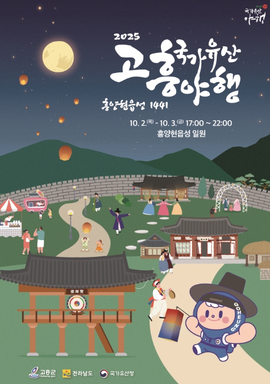 [뉴스앤톡] 고흥군은 오는 10월 2일부터 3일까지 이틀간 고흥읍 존심당 역사문화공원(구 군청)에서 '2025년 고흥 국가유산 야행 ‘흥양현읍성 1441’'을 개최한다고 밝혔다.
