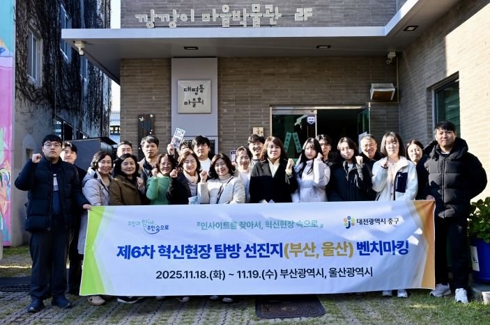 이번 탐방은 김제선 중구청장을 비롯해 관련 부서 담당자 등 26명이 참여하여 부산광역시 영도구, 수영구, 동구의 주요 시설 및 울산광역시에서 열린 대한민국 지방시대 엑스포를 방문해 노인·장애인 중심의 문화·편의사업과 일자리 사업을 벤치마킹했다.