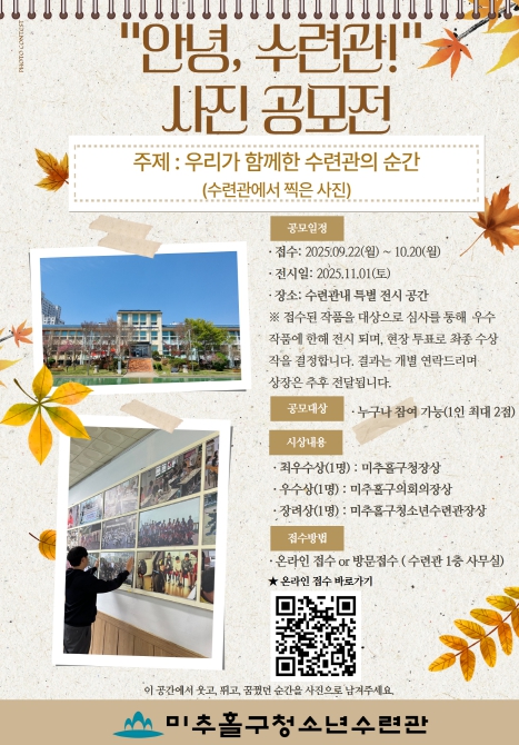 특히 현재 진행 중인 사진 공모전은 수련관 이용자와 지역 주민 누구나 참여할 수 있으며, 수련관에서의 소중한 순간을 기록해 함께 나누는 자리로 마련됐다.