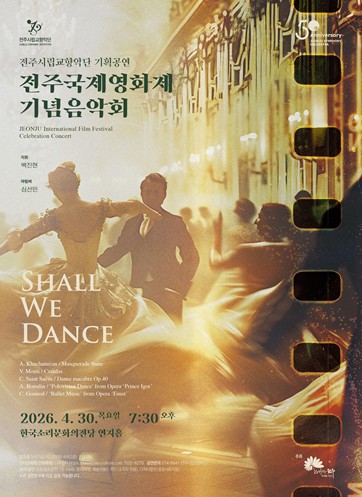 [뉴스앤톡] 전주시립교향악단은 전주국제영화제를 기념해 오는 30일 오후 7시 30분, 한국소리문화의전당 연지홀에서 기획공연으로 전주국제영화제 기념 음악회인 ‘SHALL WE DANCE’를 선보인다.