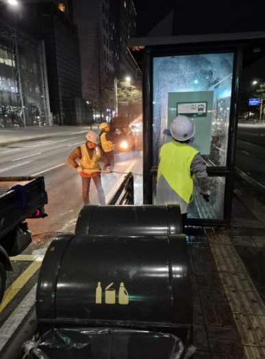 겨울철 적설과 미세먼지로 오염된 버스정류장 지붕과 의자 등을 고압세척기로 세척하고, 고착된 먼지와 오염물질을 제거하는 등 승강장 전반에 대한 환경정비를 진행했다.