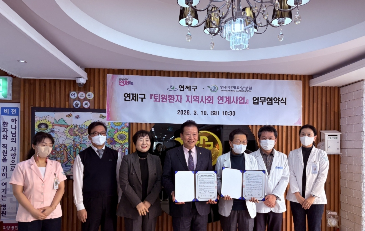 이번 협약을 통해 연제구와 연산인제요양병원은 퇴원 후 거동이 불편한 환자들이 가정에서도 안정적인 생활을 이어갈 수 있도록 긴밀한 협력 체계를 가동할 방침이다.